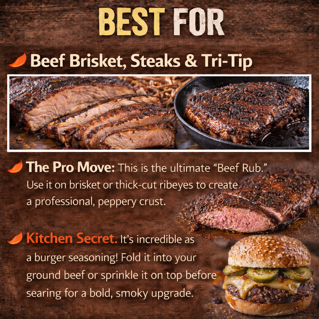 • The Pro Move: This is the ultimate “Beef Rub.” Use it on brisket or thick-cut ribeyes to create a professional, peppery crust.